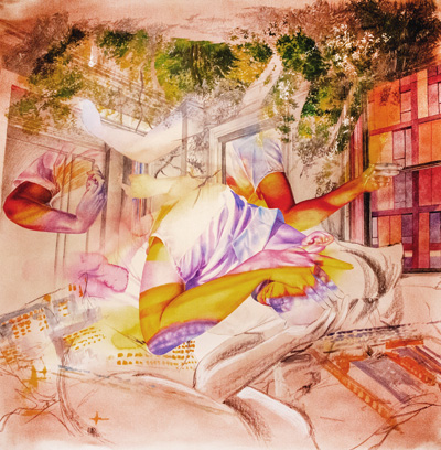 AQUACHROME Quite possibly the oldest form of painting, watercolor persists today, defying narrow categorization and broad stereotype. Practiced for centuries in concept development preliminary to 'finished' paintings made in oil or other scale-worthy durable media, watercolor also found favor with botanists, illustrators, and portraitists, and was applied to varied and countless surfaces. The nature of the media itself represents a delicate and dictatorial transparency, fluidity, and a potential for expressive spontaneity. This not only makes it an ideal vehicle for contemporary art, but also one of training, intensity, philosophy, and play for any who practice it. Where an artist can easily dominate other painting media, forcing a will through viscous layers into a work of art like taming a wild horse, with watercolor there is dialog, compromise, and undeniable forthrightness. In this way the artist practicing watercolor works with a tiger in the room. *Along with watercolor, works in gouache, ink wash, and other similar media were accepted for consideration as a subset of the broader Manifest painting biennial. For this exhibit 48 artists submitted 164 works from 20 states, Puerto Rico, and 3 countries, including Canada, Cyprus, and the United States. Nineteen works by the following 13 artists from 12 states and Canada were selected by a blind jury process for presentation in the gallery and the Manifest Exhibition Annual publication. Presenting works by: Elisa Albrecht Milena Guberinic Mikey Hernandez Kristen Letts Kovak Maria Laureno Tom Leytham Ambrin Ling Scott McDonald Matthew McHugh Irene Pantelis Adrian Rhodes Katherine Sullivan Emily Wingate