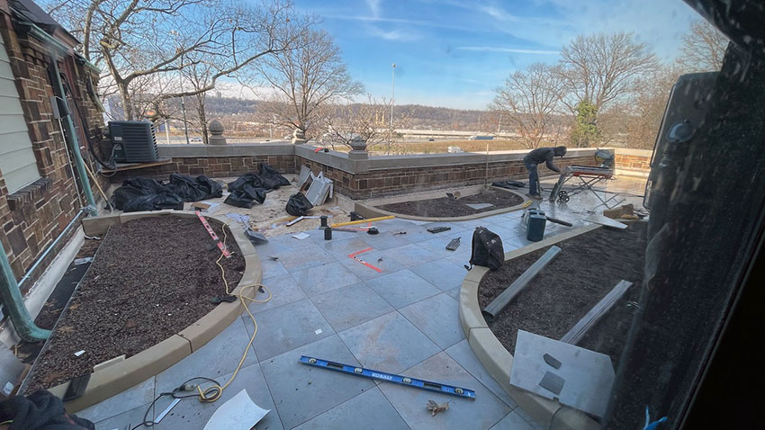 West Studio Terrace flooring and planting beds taking shape. Late December 2025.
