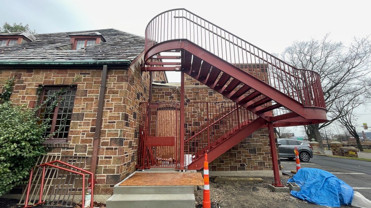 North Stair. January, 2026. (This is the other part of the code-mandated egress. Not only will it allow safe exit from the second floor, it will also connect the second floor studio activities to the first floor gallery and exhibition programming through a new door into the North Gallery Hall.)